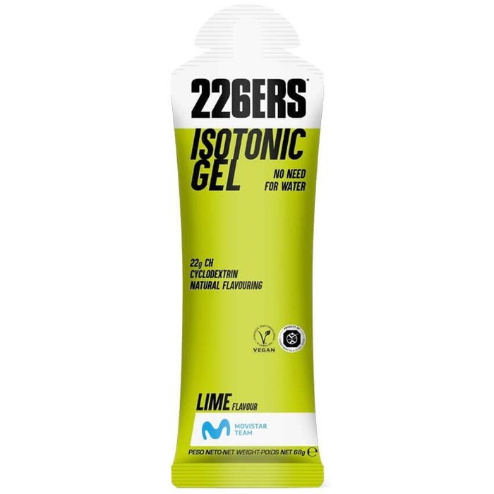 226ERS Isotonic Gel Lime 68 g to nowoczesny żel izotoniczny dla biegaczy, kolarzy i triathlonistów, który dostarcza 22 g węglowodanów w jednej porcji. Dzięki formule opartej na cyklodekstrynie (Cluster Dextrin®) stanowi wygodne źródło energii podczas intensywnego wysiłku fizycznego.